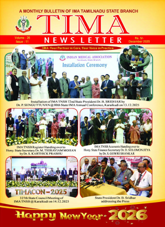 The Indian Medical Association (IMA) Tamilnadu is a voluntary organization, representing the entire spectrum of the modern allopathic medicine and its specialties in our State. The organization was started in the year 1940, by a band of dedicated doctors whoever deeply committed in upholding the dignity of the medical profession and also in the improvement of the quality of the medical service to the people of Tamilnadu especially to the poor.